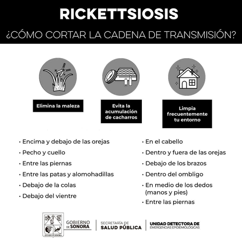 Ante esto, la SSA recordó a la población que la rickettsia es una enfermedad causada por la bacteria que se transmite de animales a humanos por medio de la mordedura de una garrapata y que es altamente mortal; puede ser curable si se detecta a tiempo y se inicia el tratamiento adecuado dentro de los primeros tres días desde el inicio de síntomas.