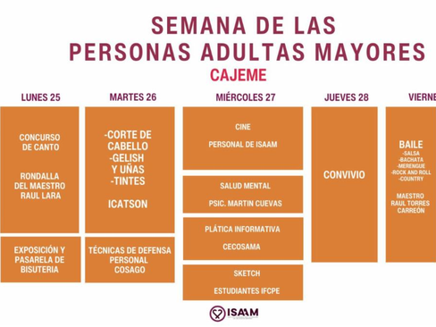 Hermosillo, Sonora; 23 de agosto de 2025.- Para acercar servicios y garantizar un acceso equitativo a la información y programas públicos, el Instituto Sonorense para la Atención de los Adultos Mayores (ISAAM) llevará a cabo la Semana de las Personas Adultas Mayores, en el marco del Día Nacional de las Personas Adultas Mayores.