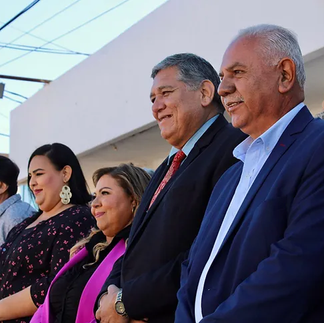 En exterior de Banamex, en Reforma, entre callejón Abasolo y calle Niños Héroes, se instaló un templete, en el que el alcalde Luis Fuentes Aguilar pasó revista al contingente y mostró sus respetos a la Bandera, en donde estuvo acompañado de su esposa Xóchitl Mejía de Fuentes, presidenta de DIF municipal, así como integrantes de Cabildo, funcionarios e invitados especiales.