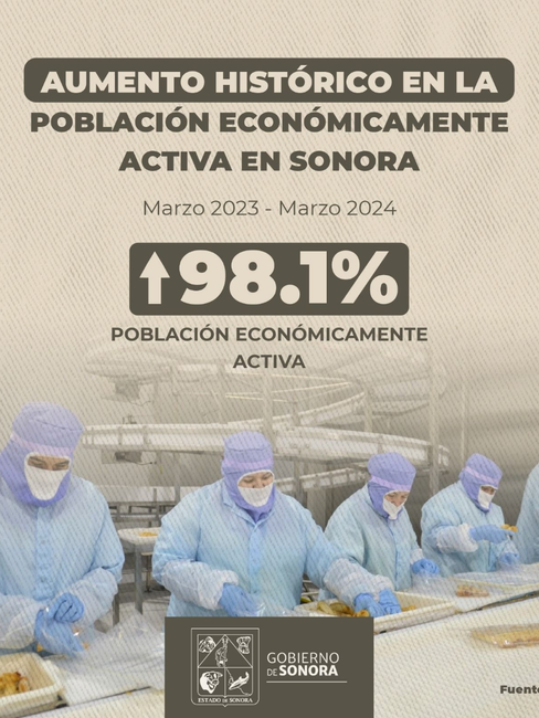 Con base en la estadística, Sonora se coloca como la segunda entidad fronteriza con mayor población económicamente activa y presenta la cifra más baja en tasa de desempleo para un mes de marzo desde que se tiene registro del Inegi.